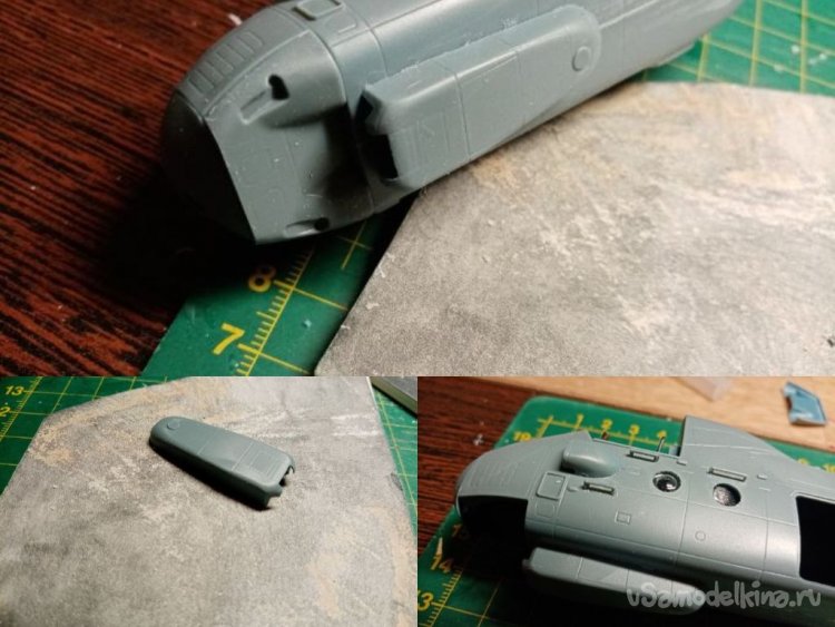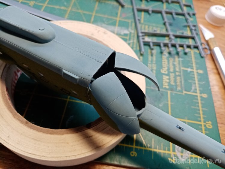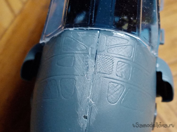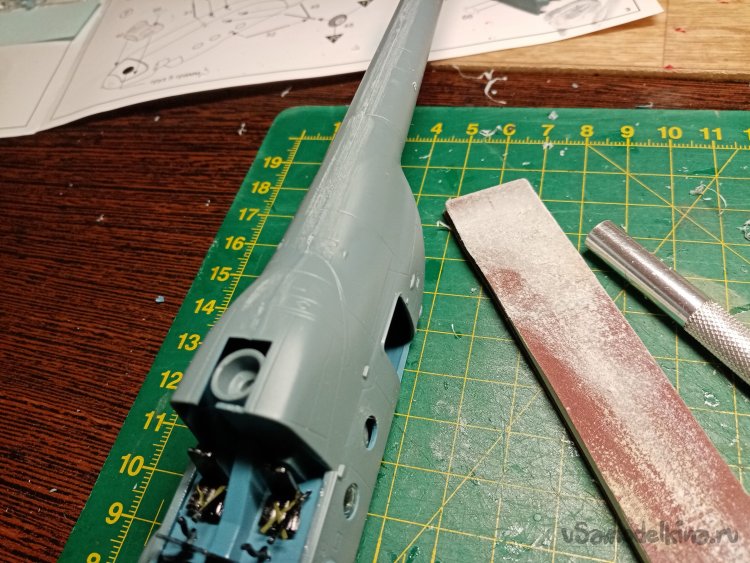 В верхней части фюзеляжа пришлось поработать ножом и шкуркой. По хвостовой балке тоже не порядок.