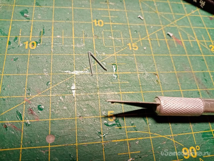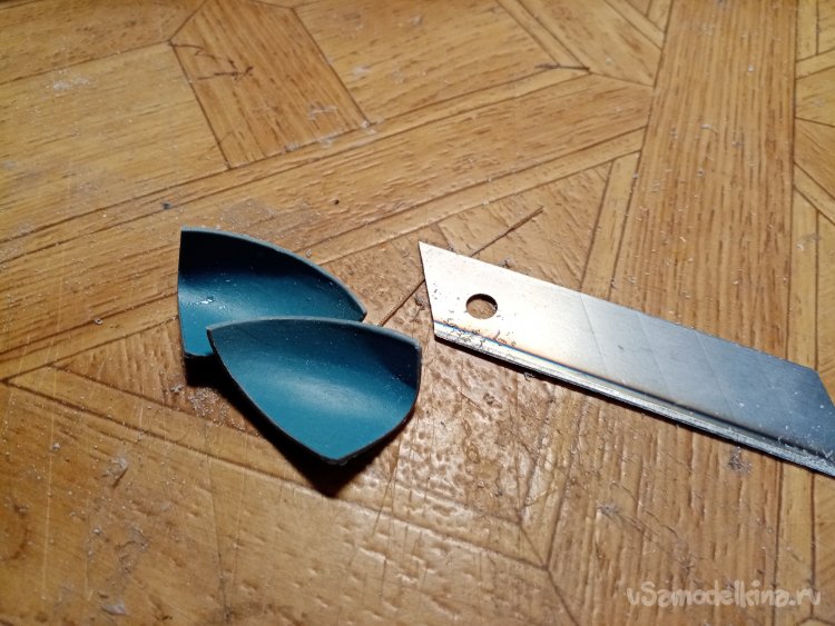 Детали отделяю от литников при помощи обыкновенного треугольного ножа для творчества. Беру уже использованное лезвие, и перетачиваю отломанный кончик. Так надежнее.