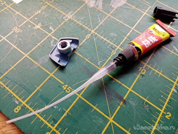 Ножом засверливаю в нужном месте и приклеиваю стойку антенны.