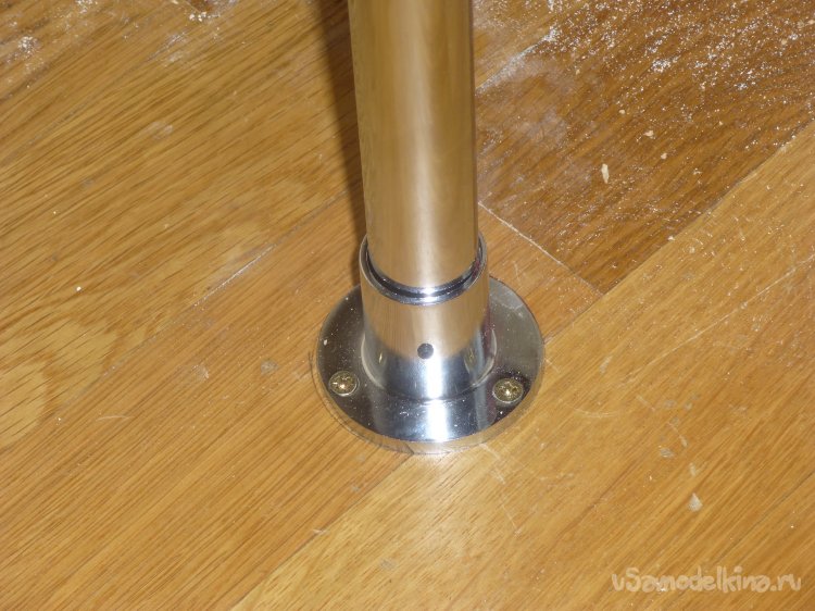 Выставил по уровню вертикальные стойки и закрепил к полу с помощью удлинённых фланцев.