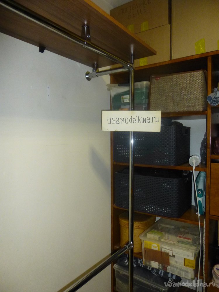 Когда гардеробная в спальне полностью перешла во владение жены, у меня начались проблемы. Нет, свои вещи я перетащил в большую гардеробную комнату, которая расположена между спальней и кабинетом — здесь всё нормально. Проблемы в основном сводились к тому, что ей некуда было вешать свои шмотки (а они всё прибавлялись и прибавлялись). В гардеробной было одно только место, где можно вешать вещи.