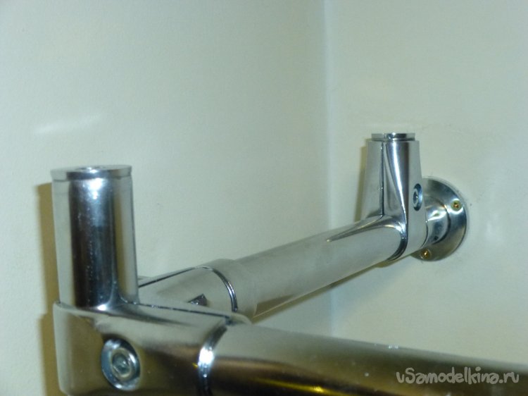Затем я отпилил от трубы 1000 мм два куска по 250 мм для крепления конструкции к стене. От этой же трубы отпилил 4 куска по 22 мм. Они будут вставляться в соединитель 2-х труб для крепления резьбовых вставок.