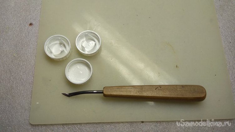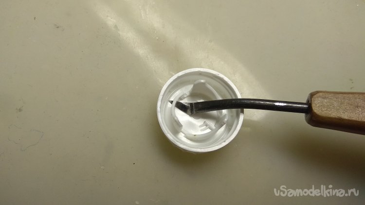 Следующий этап, удаление внутренностей у крышек, чтобы они не создавали тень. Вырезал резачком, позаимствовал у отца.