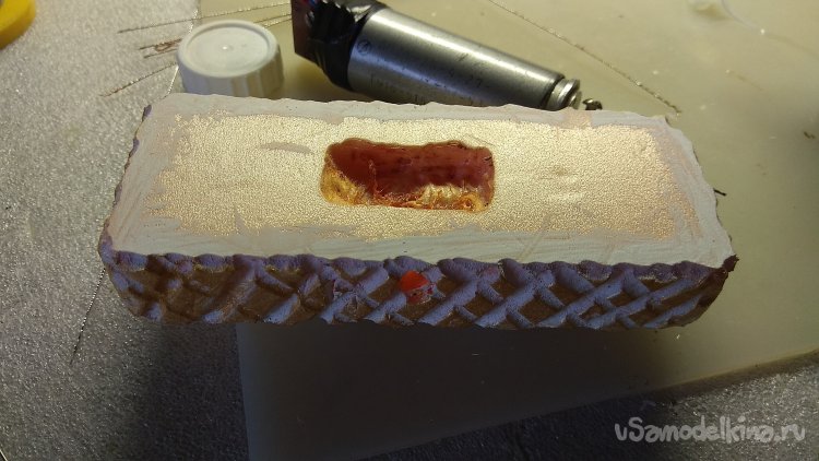 Пеноплэкс немного поцарапан. Гладкий брусок будет выглядеть просто. С помощью нагретого паяльника шаловливые ручонки изобразили незамысловатый узор.
