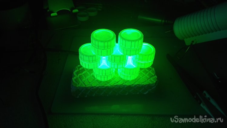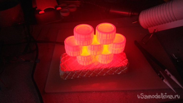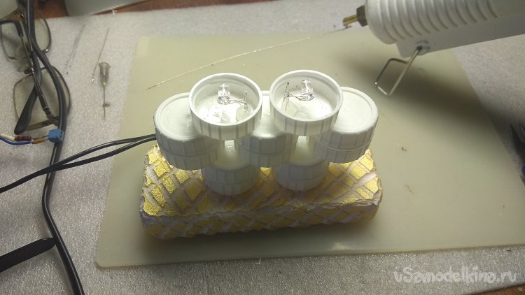 Хотел ещё приклеить на низ силиконовые ножки, чтобы светильник устойчиво стоял на поверхности, но ножки где-то затерялись. Найдутся, приклею.