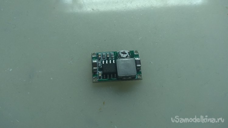 Ток потребления семи светодиодов при питании от трех вольт колеблется от 60 до 80 мА, в зависимости от количества горящих кристаллов. Принял решение поставить малогабаритный понижающий DC-DC преобразователь такого типа: