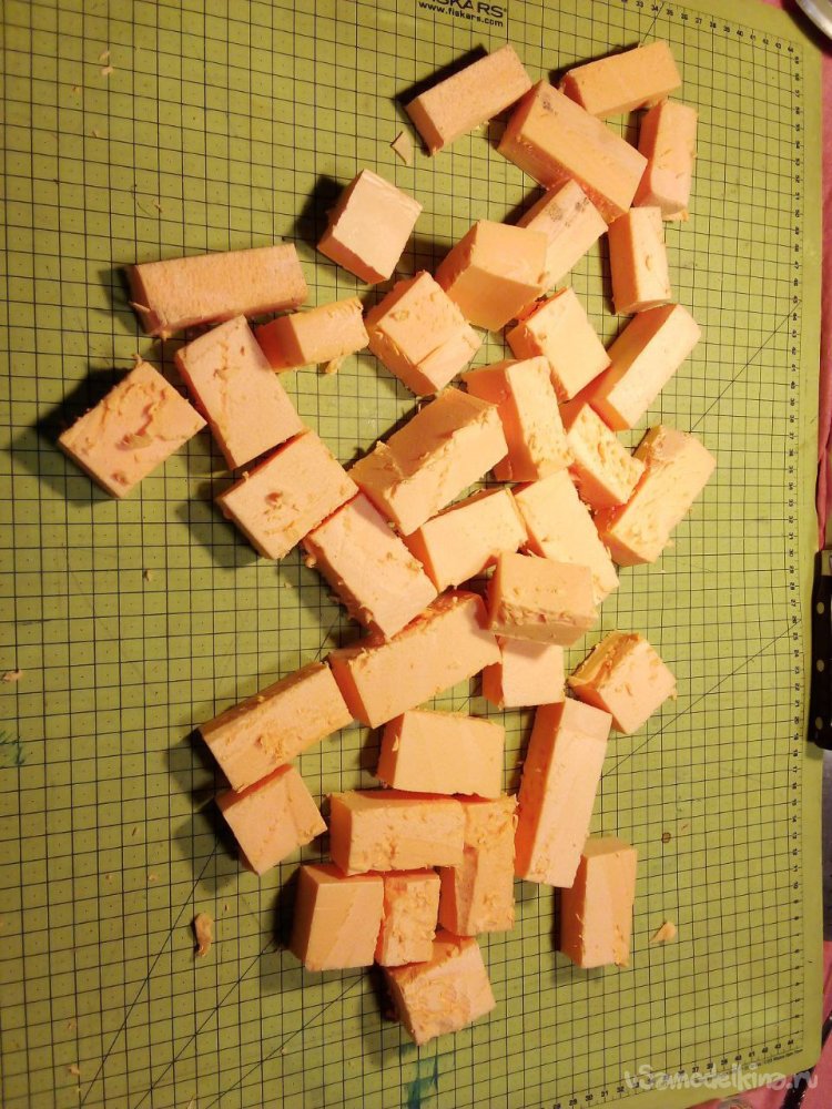 Затем из этих полосок вырезаю (также ножом) брусочки различной длины (для разных форм поплавков)