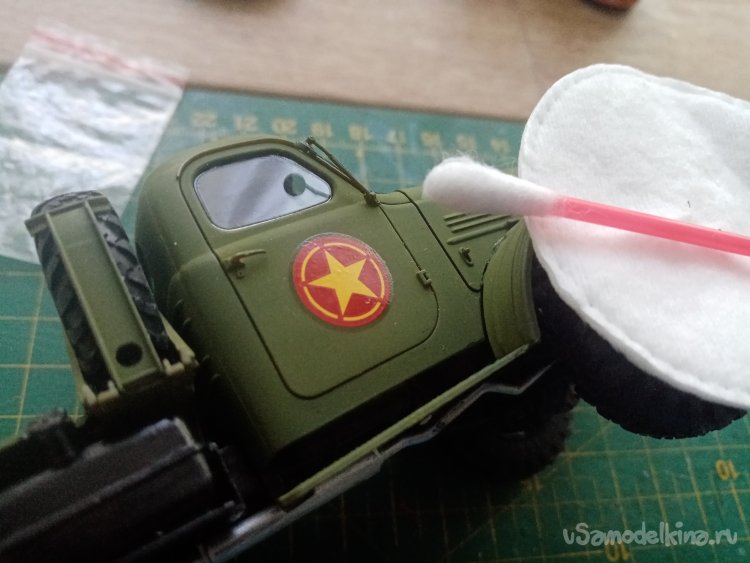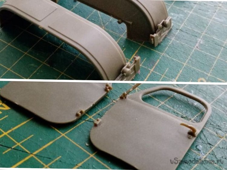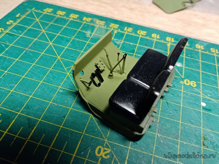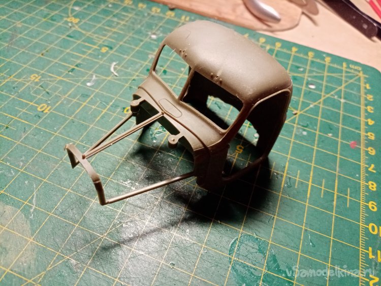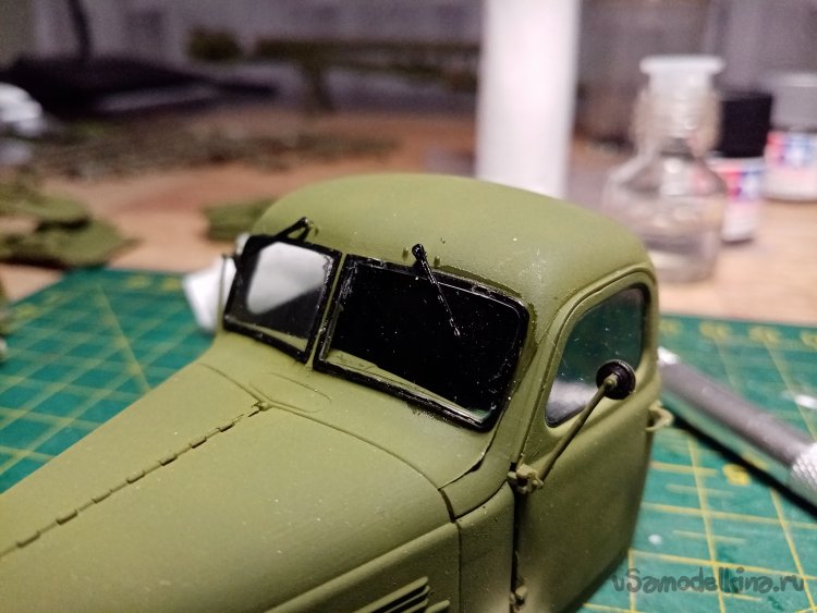 Стекла кабины и дверей на месте. Дворники тоже. К стати передние стекла можно сделать поднятыми. Но что, то не решился.