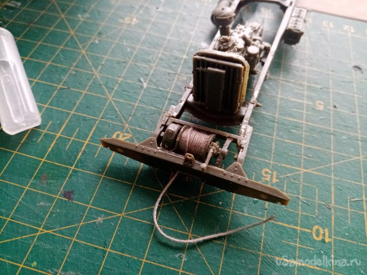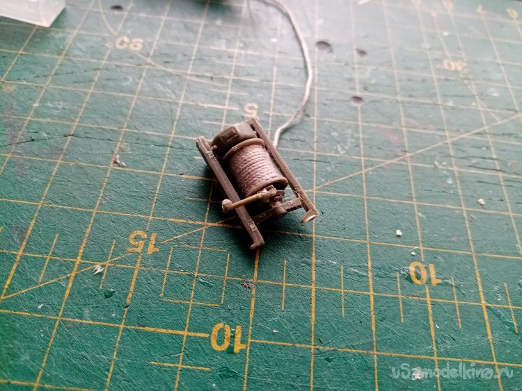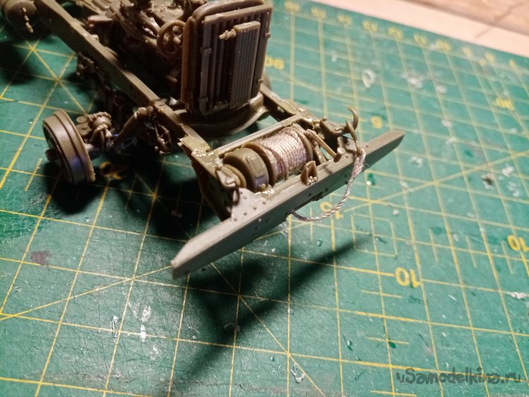 На барабан лебедки наматываю очень похожий трос в соответствии с инструкцией. Очень подробная деталировка. Даже рычаг управления лебедкой имеется.