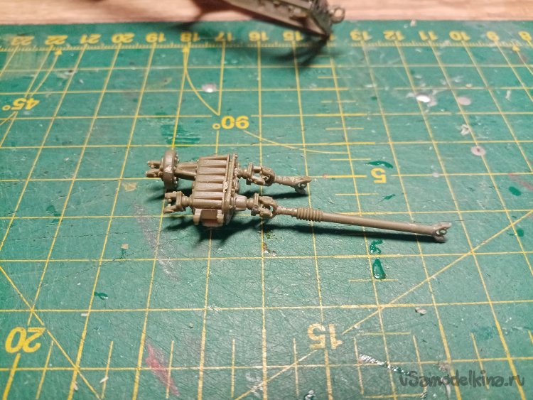 Раздаточная коробка с валами привода. И все как настоящее. Крутится и отклоняется на карданах. Гофр защитной муфты тоже в наличии.