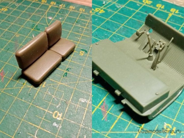 Следующим номером программы. Оснащение кабины водителей. Слева отверстие для рулевой колонки. Она проходит в пол и соединяется с тягой поворота передних колес. Подсмотрел в инструкции.