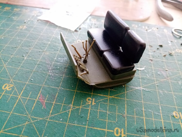Для пробы начинаю окраску с небольших деталей внутреннего интерьера кабины.