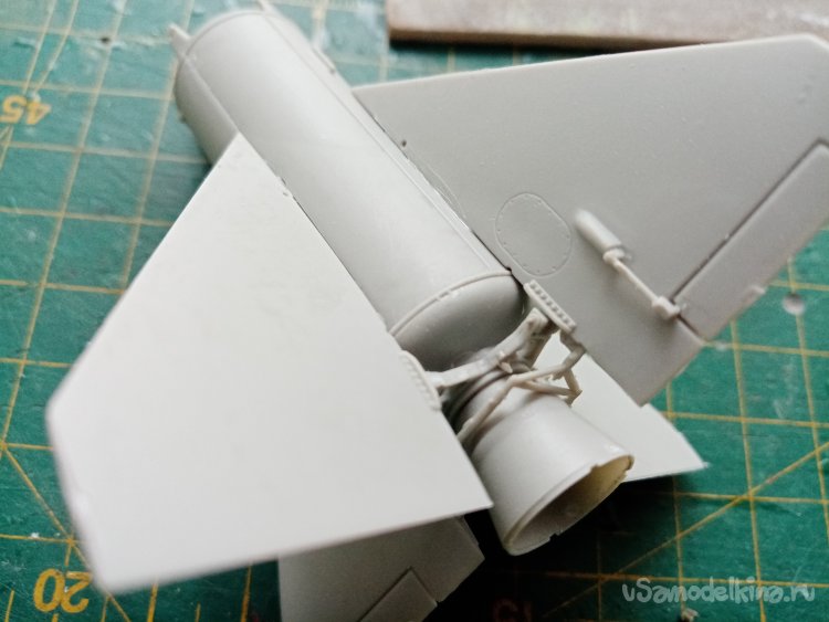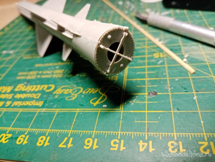 Первая ступень. Рули управления с тягами. Сопло с рамой управления. Заклепки как настоящие.