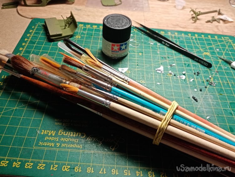Кучка кисточек пригодилась в работе с мелочевкой. Там мазнуть, тут капнуть.