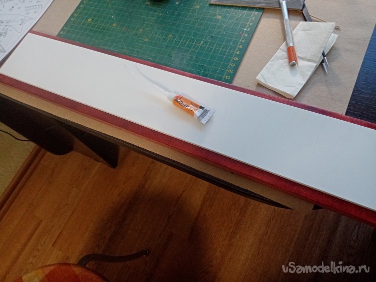 Подставку вырезал из хорошей фанеры в 8мм. Немного морилки и окрасил автомобильным двухкомпонентным лаком на три слоя. Сверху накладку из белого рекламного пластика.