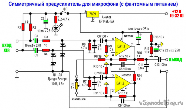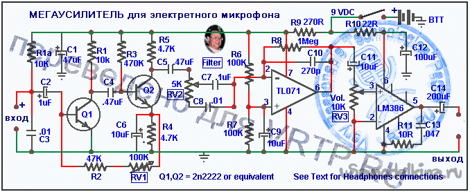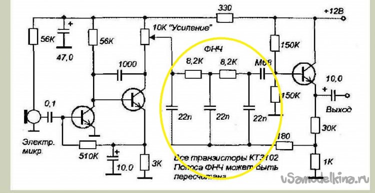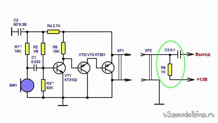Электронных схем разных микрофонных усилителей хватает, вот пример (тут же и выбранный нами конструктив).