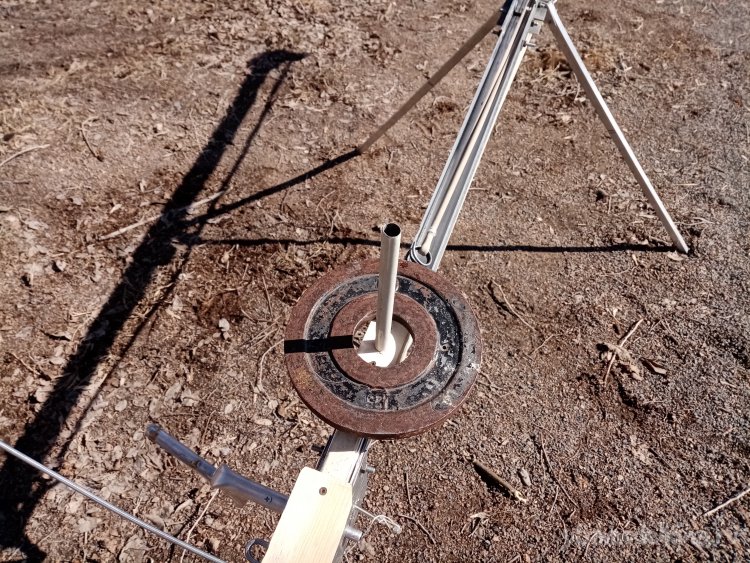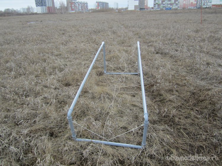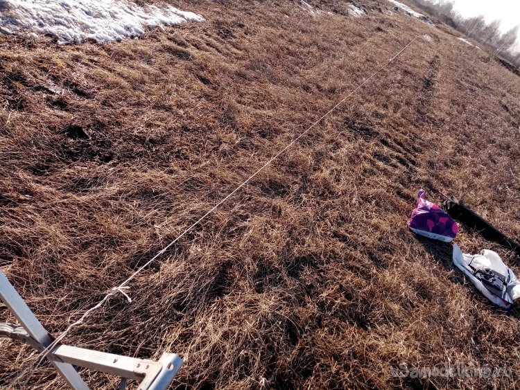 Пробные запуски. Выявили некоторые недостатки. Небольшое расхождение стоек направляющих ликвидировали растяжками. При старте трех килограммового крыла имел место небольшой изгиб направляющих. Такой дефект устранили установкой внутри труб деревянными брусками. И момент усилия резинового шнура скорректировали стойкой на расстоянии в 4 метра от точки крепления. Что позволило увеличить угол приложения силы практически на одной линии с наклоном направляющих.