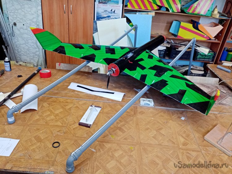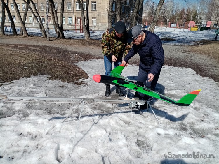 Установили на крыло складной винт, что позволило свести к минимуму поломку лопастей. Запуски прошли успешно. Простая катапульта из пластиковых труб после некоторой доработки успешно работает.