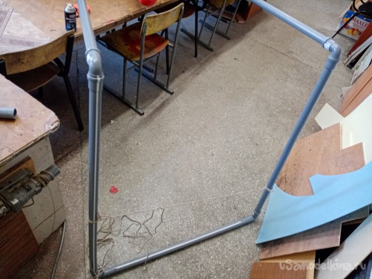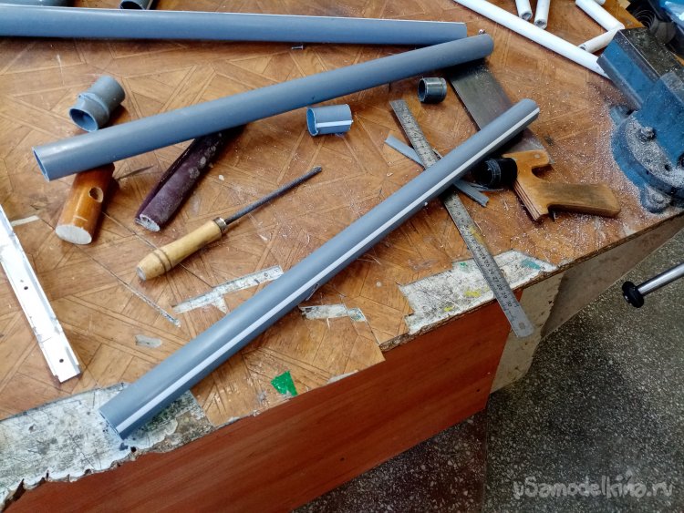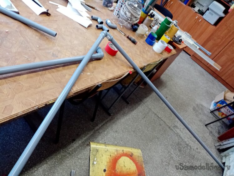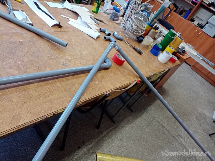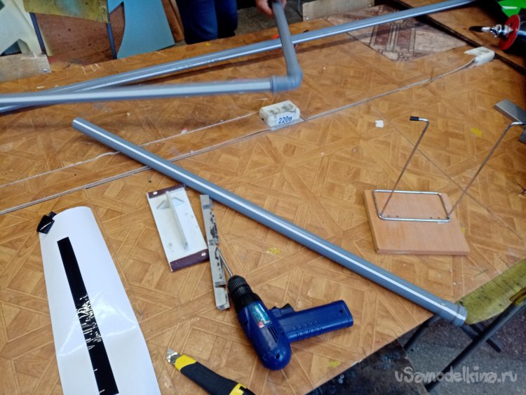 Начались поиски материалов для изготовления катапульты и стартового устройства. Путем «мозгового штурма» выработали концепцию будущего устройства. Крыло должно опираться на две направляющие. Заброс будем осуществлять при помощи резины. После ремонта помещения осталось некоторое количество труб из пластика. Вполне приемлемого диаметра и длины. А так же несколько переходников и уголков.