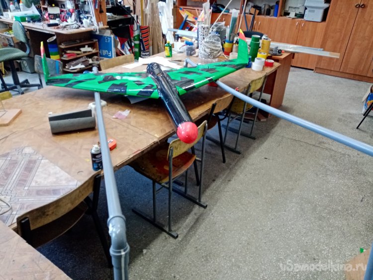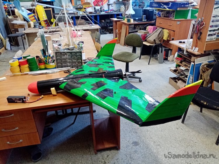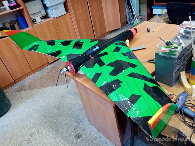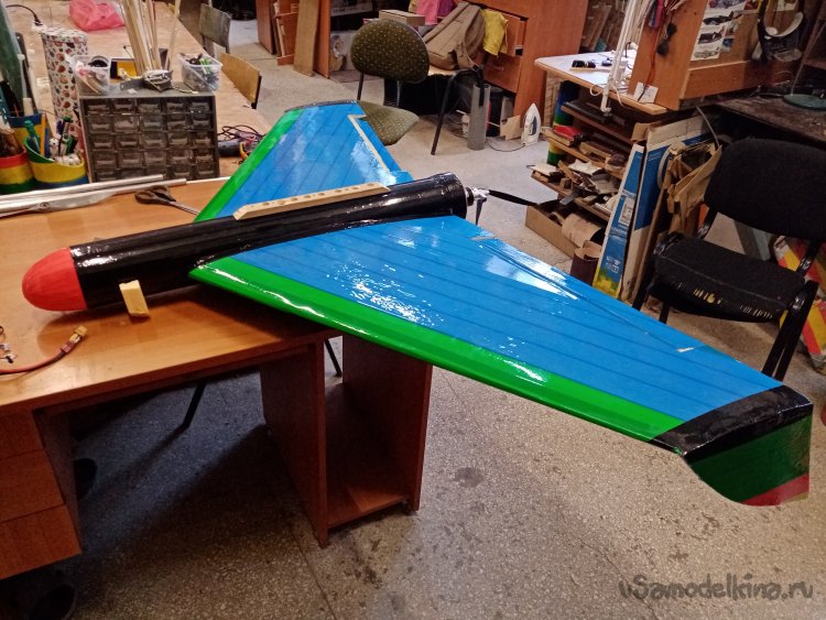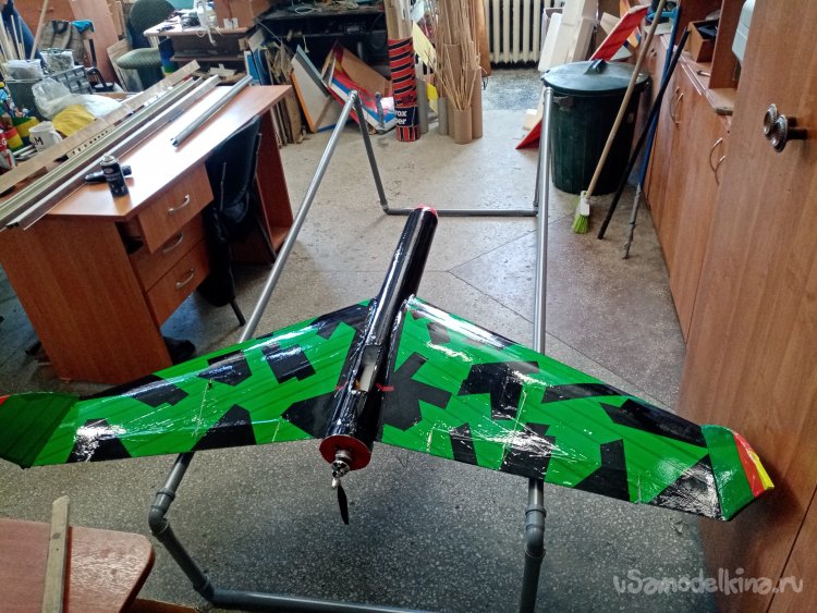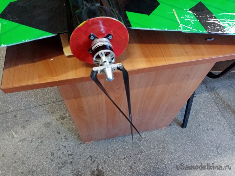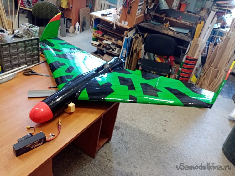 Но конструкторская мысль не стоит на месте. Попробовали закинуть крыло в 3 кило. Но с работающим мотором. Не вышел «каменный цветок». Модель повреждений не получила. Упала на пузико и совершенно замечательно проехала метров пять. В минус винт.