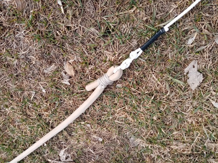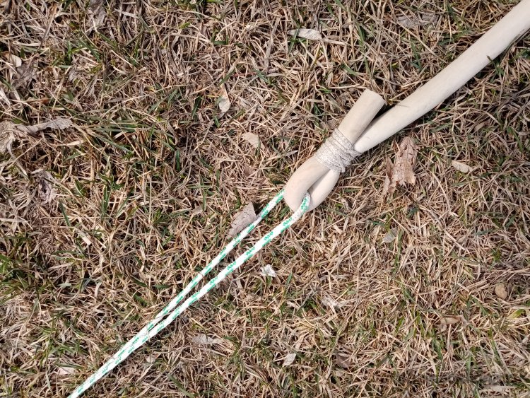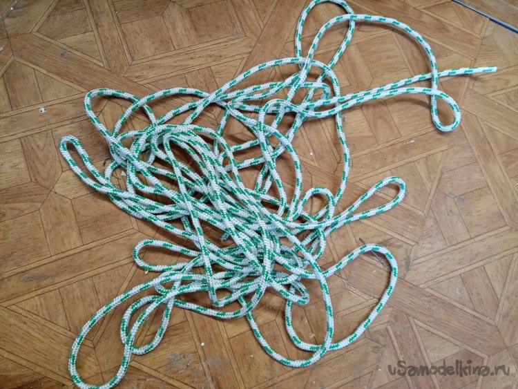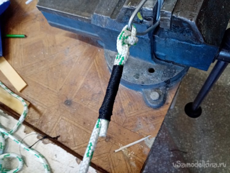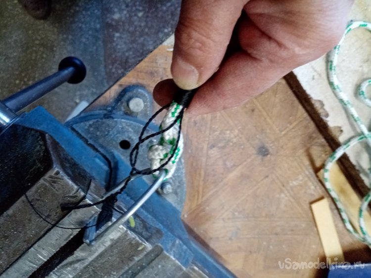 Свободные концы шнура нужно заплести, прямо как на корабле. Снижая риск рассоединения. Для обвязки купил моток черного капронового шнура. Хороший. Проверил на луке. Из него изготовил тетиву.