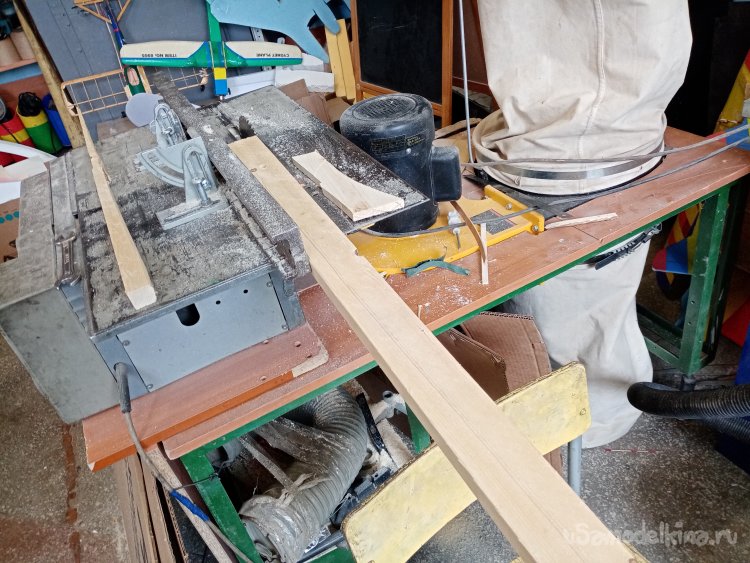 Начинаем резать и строгать в соответствии с намеченным планом. Две направляющие длиной в полтора метра с опорами.