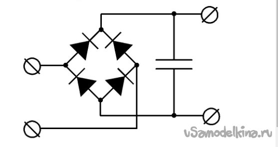 Диодный мост был использован на 2А под названием 2KBP06M, а конденсатор 160 uF/330V, но напряжение лучше взять с запасом, например 400В.