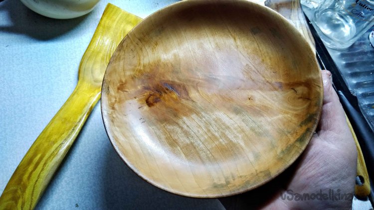 Тарелочка готова, но я по-прежнему не знаю из какой породы древесины она сделана.