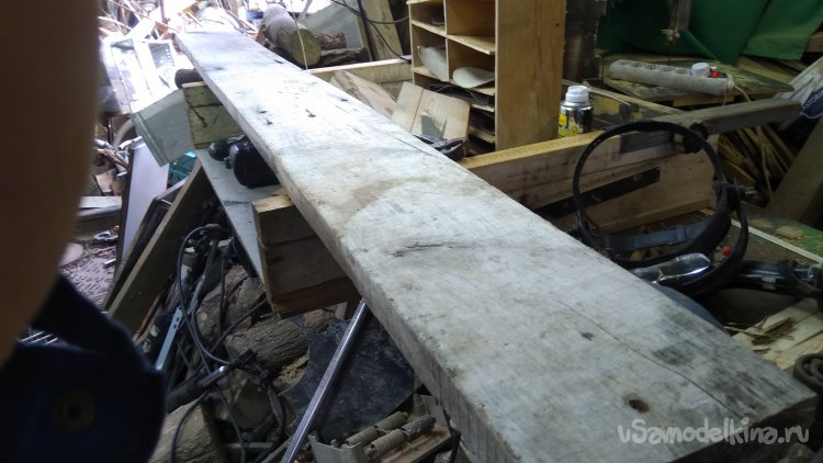 Доску я эту подобрал на море после шторма. Видно, что она довольно долго была в солёной воде, на ней даже ракушки успели вырасти.