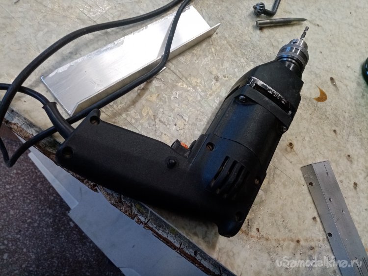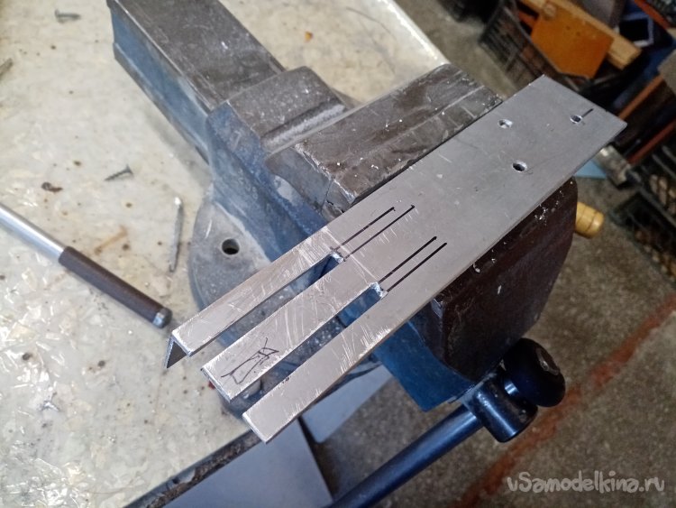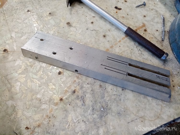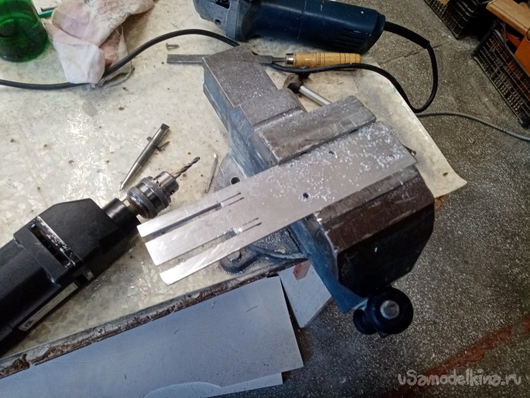 Прорезал пазы. Затем сверлю отверстия поз заклепки на 5 мм.