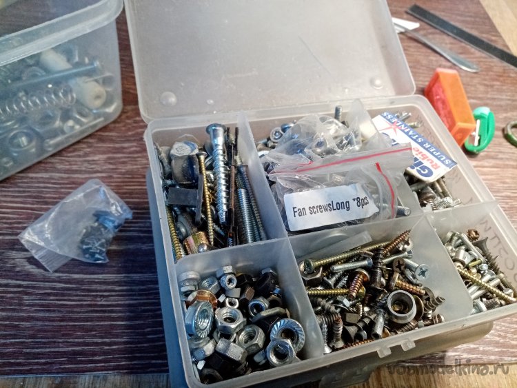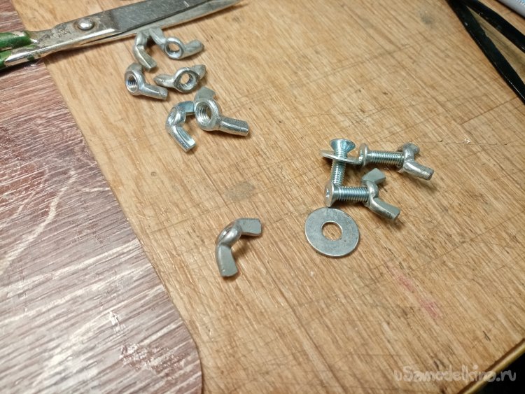 Передняя и задняя стойка по первоначальному замыслу должны крепиться разборно, на барашках. Открываю замечательную коробочку с болтиками и гаечками. Набрал нужное количество болтиков, барашков, и шайбочек.