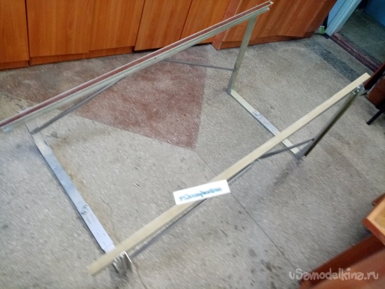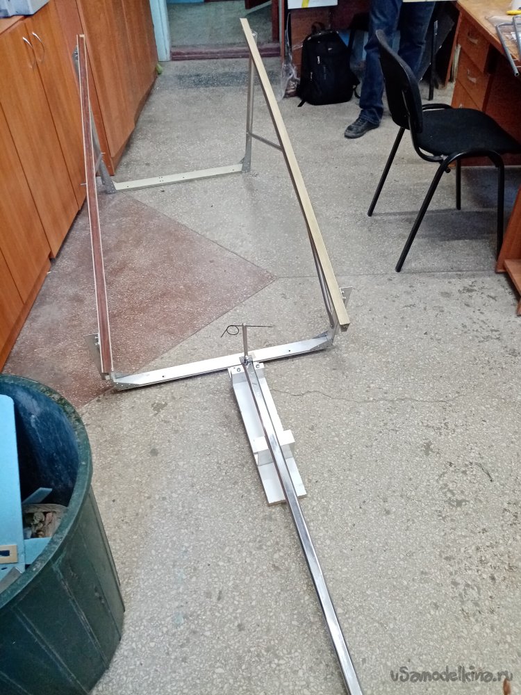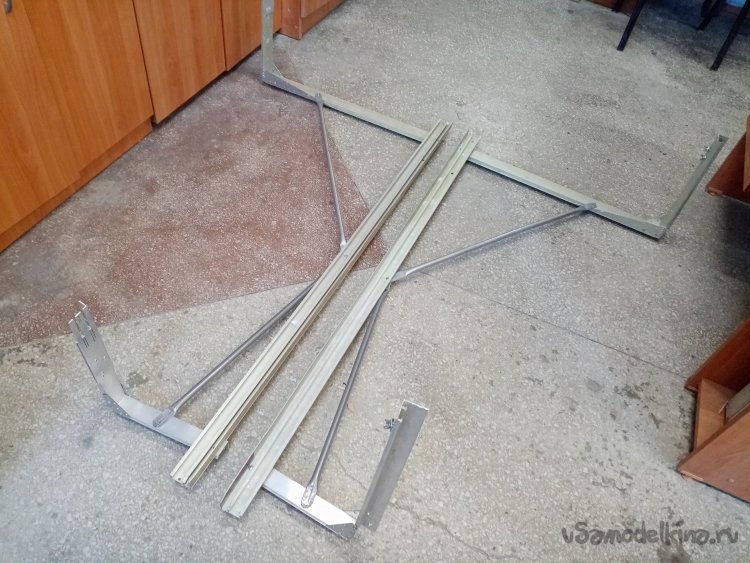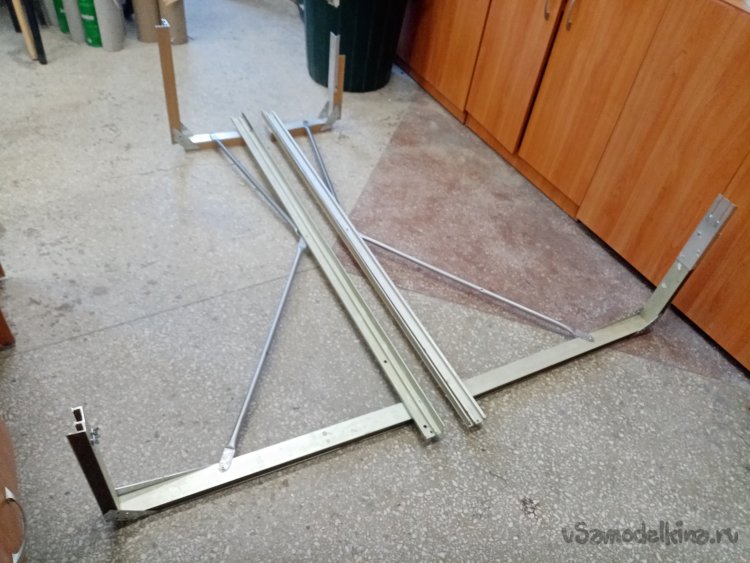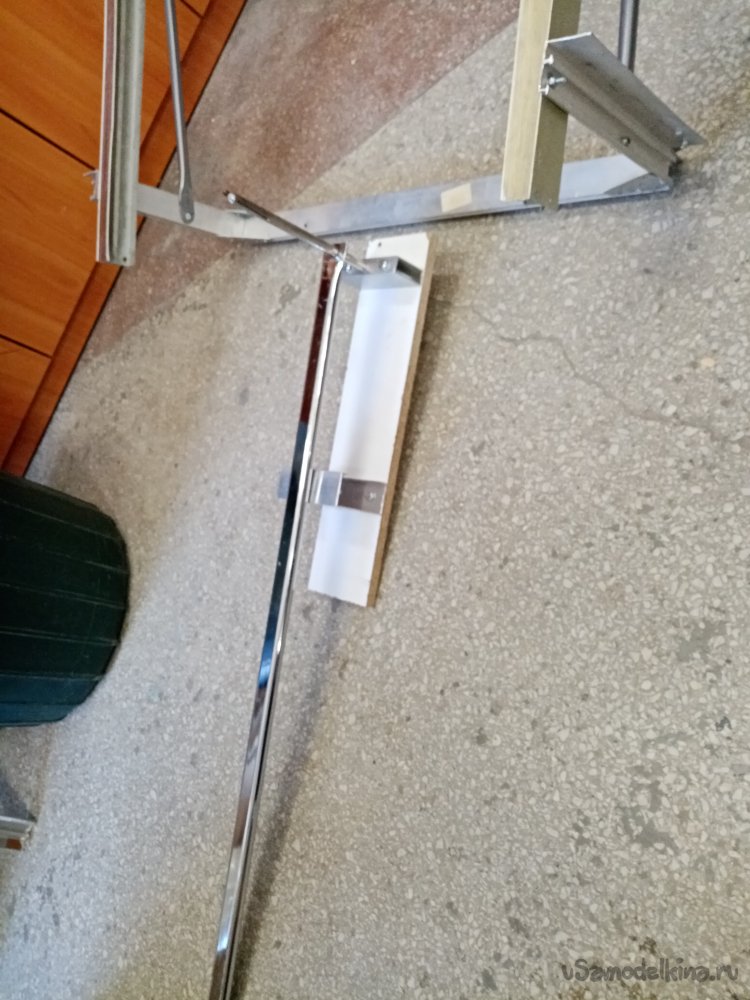 Следующим номером программы будет изготовление поперечных распорок. Связывающих раму передней и задней стойки с направляющим. Эти тяги вырезаю из трубок старой сушилки для белья. Вот фото новой . Для полного понимания конструкции и трубочек из которых бодро режу болгаркой детали распорок.