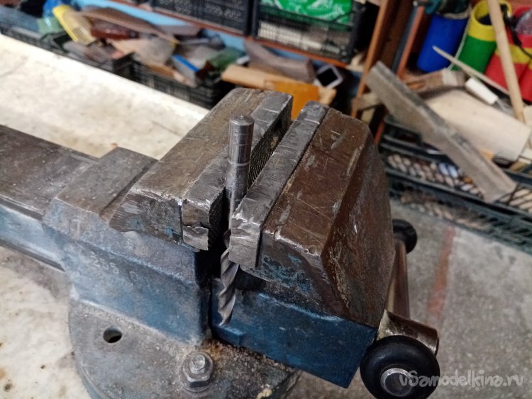 Нужна обвязка карабинов. Закрепляю в слесарных тисках сверло на 9мм в качестве опоры.