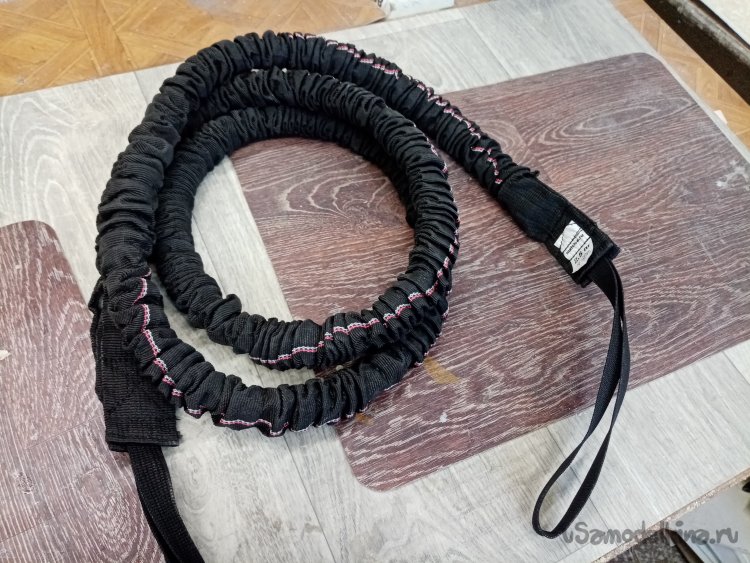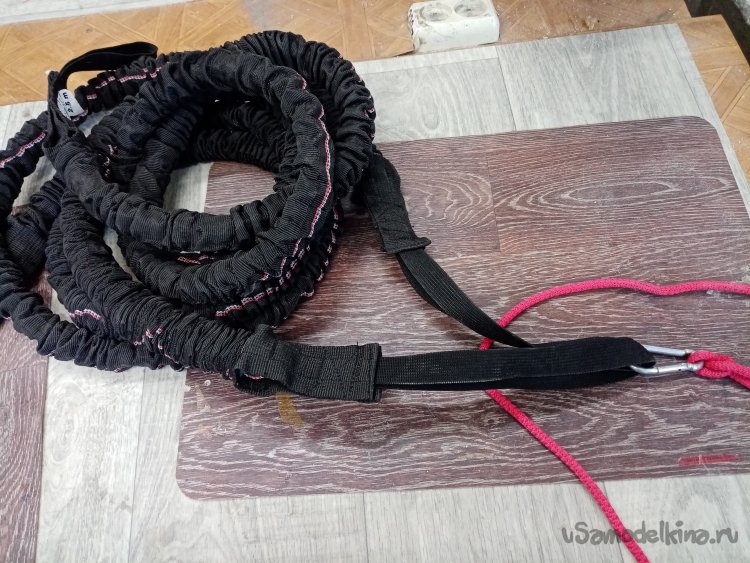 Наш спонсор прикупил в магазине для фитнеса такие вот резиновые жгуты, две штуки. В оплетке с петлями. Спасибо ему за подарочек.