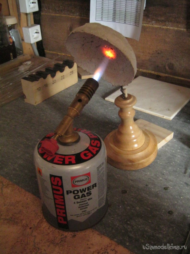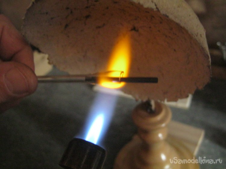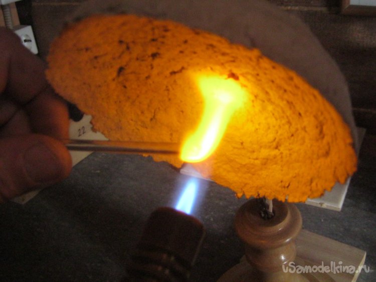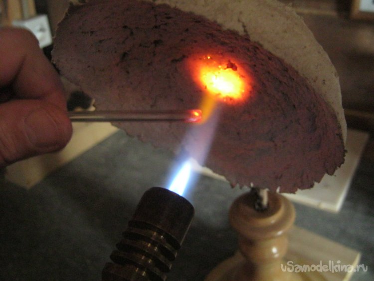 Фото 9. Стеклодувная часть работы невелика, стекло легкоплавкое – можно обойтись компактной горелкой на баллончике. Для равномерности нагрева применил и отражатель пламени, возвращающий часть, обычно улетающего, тепла на заготовку с обратной стороны