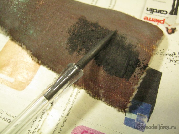 Фото 7. Практика показала – весь батарейный графит пропитан или обмазан некой парафинообразной субстанцией, начинающей плавиться, гореть и коптить при сколько-то заметном нагреве. Для получения графита чистого эту пакость следует перед применением, заранее выжечь. Работать на открытом воздухе. Или по зимнему времени – под вытяжкой. Разогревал стерженёк до заметного малинового свечения, удерживая один из концов в обратном пинцете. Подстелил газету – расплавленный состав бывает капает вниз