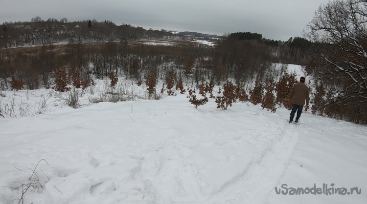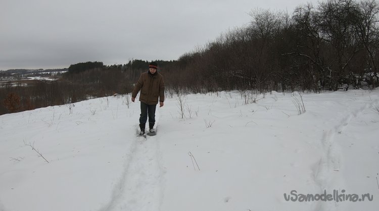Опыты проводились по первому пухлому снегу, глубина местами была выше колена. В свежем снегу снегоступы несколько проваливаются, это усложняет передвижение, но для глубокого снега передвижение становится, по крайней мере, реальным.