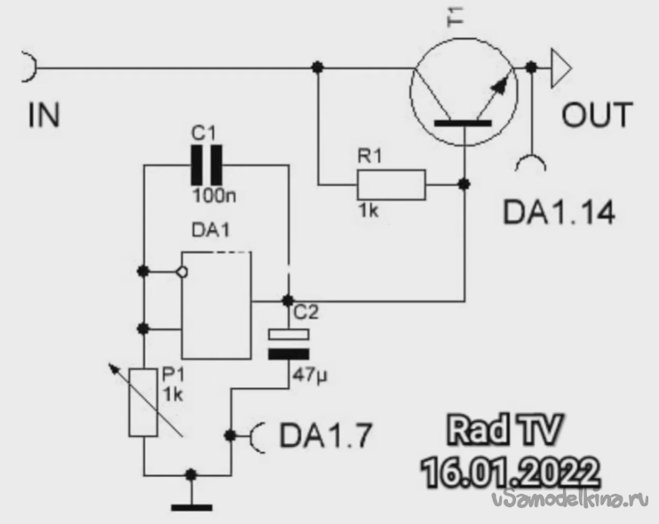 В данной принципиальной схеме используеться один элемент из микросхемы DA1, а сама микросхема работает от самозапита.