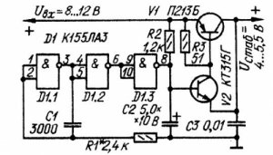 Регулятор напряжения на логике 2И-НЕ (к155ла3)