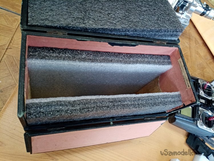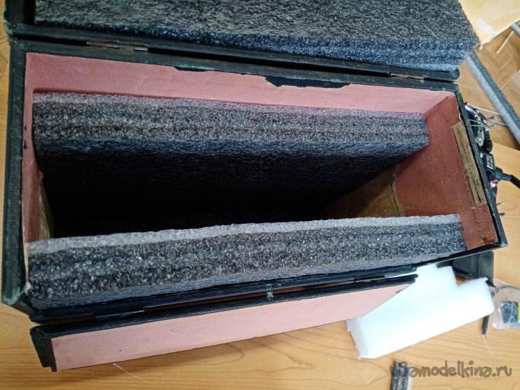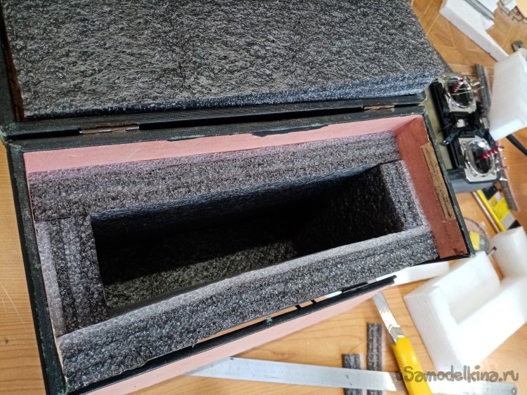 Примерял аппаратуру в коробочку. Входит совершенно нормально. Даже с запасом. Буду делать внутри мягко и уютно. Основной инструмент при модернизации это обыкновенный канцелярский нож с выдвижным лезвием.