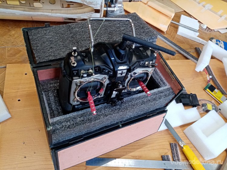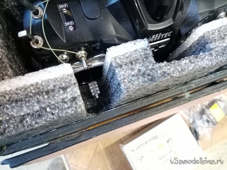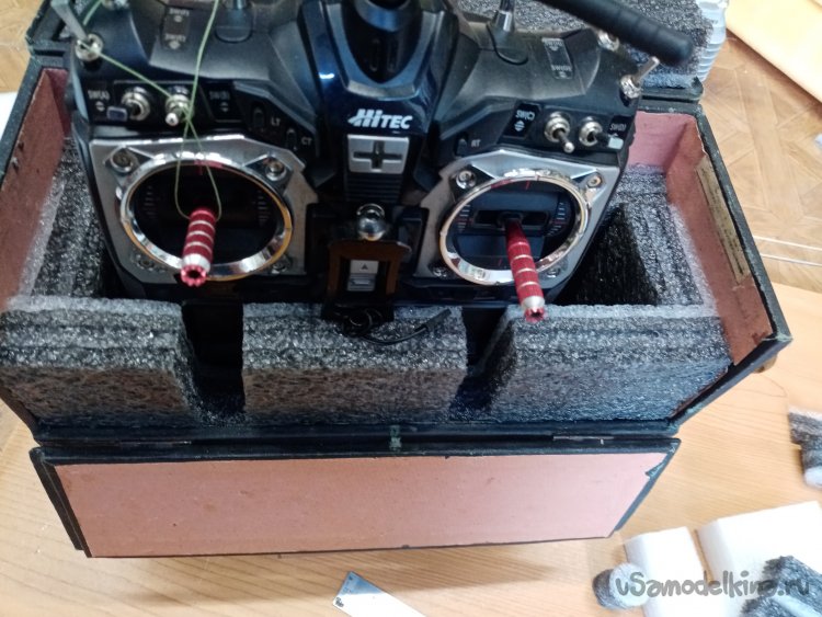 Еще раз примеряю блок аппаратуры к внутреннему объему коробочки. Вот только стики немного длинноваты. Но с этим потом решу. Есть вариант по короче. Такие изменения не принципиальны.