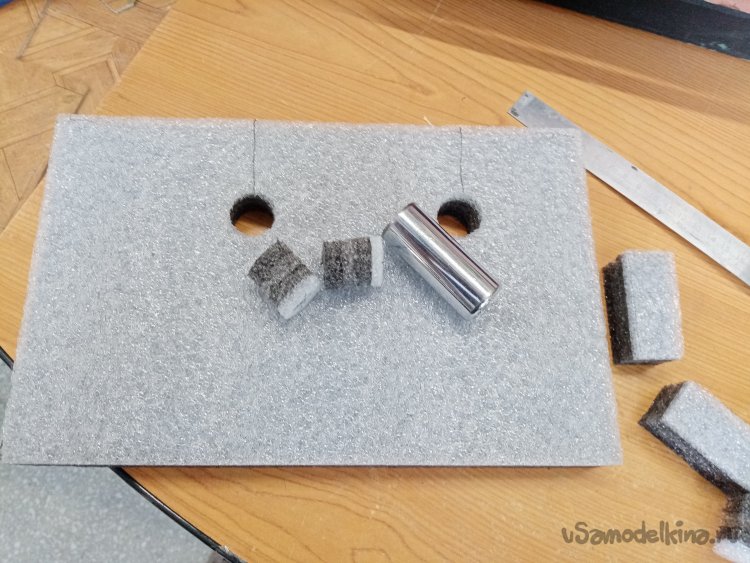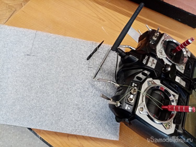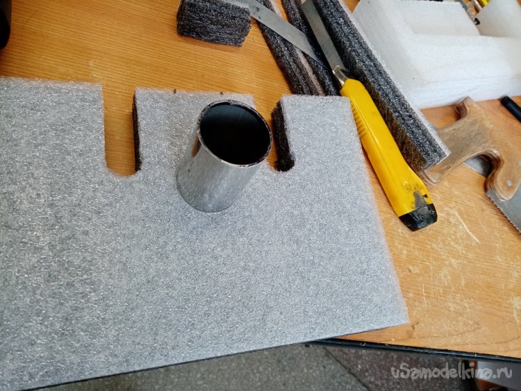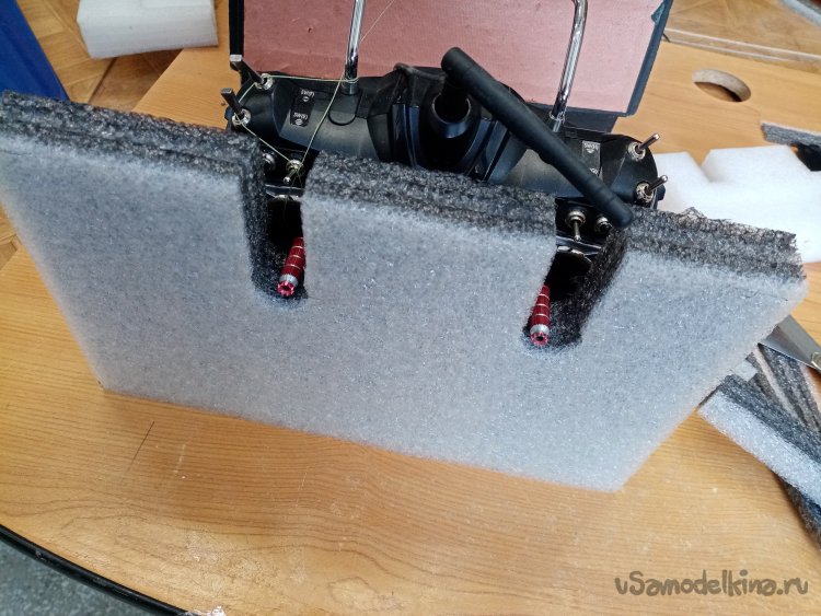 Примеряю пульт к мягкому месту. Нужно немного подстрогать поролон.