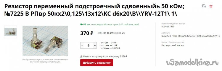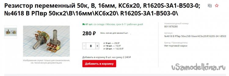 То, что надо, но безумно дорого! И зачем, скажите мне, восемь таких потенциометров!? Солить? За 280 руб. одну штуку я бы разорился и купил. Но восемь за 2240 руб.!? Или 2-й вариант: 370 руб. х 6 = 2220 руб.