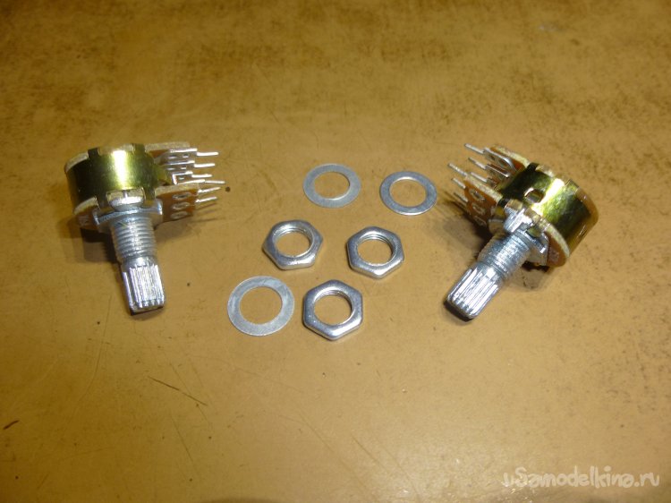 Пришло то, что нужно. Братья-китайцы не обманули — прислали два спаренных потенциометра по 50 кОм. Да ещё в довесок три комплекта креплений. Сразу впаял один на плату. Осталось припаять корпус потенциометра к земле (не знаю, насколько это нужно, но в прежней конструкции именно это было сделано — типа экрана). Кислоты паяльной нет (что-то совсем я обнищал…, всё на даче). Но есть ортофосфорная кислота, с ней паять можно даже нержавейку.