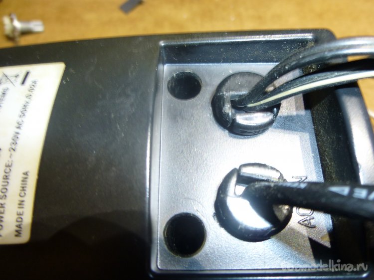 Сзади стояли заглушки на вводе проводов (не встречал таких). Оказалось всё просто — вытащил, размыкнул и освободил провода.