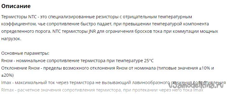 Раз проблема найдена, будем её решать. Сразу скажу, что есть готовые решения разных степеней цены и элементной базы. Я, как обычно, решил всё сделать максимально просто и дёшево. Лет тридцать назад я, наверное, слышал про такой радиокомпонент, но конечно-же давно про него забыл. Погружаемся в пучину всемирной Сети и ищем штуковину, которая изменяет своё сопротивление в зависимости от температуры. Называется эта штука «термистор» («или терморезистор»). Оказывается, они есть двух типов, первый увеличивает сопротивление при нагреве, а второй, наоборот, уменьшает. Соответственно, нам нужен второй тип. И хорошо бы, чтобы его сопротивление в итоге было близко к нулю, чтобы не мешать лампе нормально светить. Желающие могут почитать в фото ниже основные характеристики термисторов. Главное, цены не сильно кусаются, 100 руб за штуку вполне можно себе позволить потратить на опыты, детям на игрушки гораздо больше тратим. Снова ныряем в Интернет и подбираем подходящий в нашем случае термистор. Математика: если лампа ближнего света имеет мощность 55 Вт (округляем до 60 для простоты), 60 Вт \12 В = 5 А. Берём с запасом, на 7 Ампер. Кстати, очевидно, но не бросается в глаза: всегда сгорает именно спираль ближнего света, так как наиболее часто используется именно она. Поэтому эксперименты будем проводить с дальним светом, зачем тратить новую лампу на опыты? Отсюда родилась ещё одна идея, пока она только в стадии развития: КАК МОЖНО ИСПОЛЬЗОВАТЬ АВТОЛАМПЫ С ЦЕЛЫМИ СПИРАЛЯМИ ДАЛЬНЕГО СВЕТА ? Их же у всех дофига валяется.