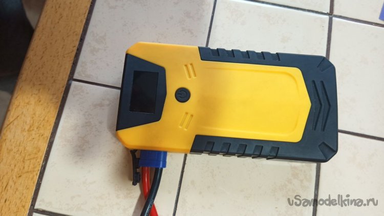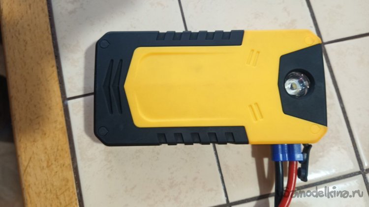 Собираем стенд для эксперимента. Чтобы не тащить домой аккумулятор, будем использовать автомобильный бустер. Это отдельная тема, устройство чуть больше смартфона, которое позволяет запустить двигатель автомобиля даже при полностью разряженном АКБ. Главное, на выходе у него 12 В, ровно как в бортовой сети моего автомобиля.