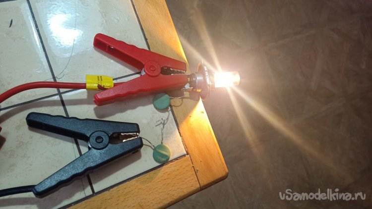 Согласен, подход не лишен недостатка. Для начала надо было измерить напряжение на лампе или хотя бы на аккумуляторе, чтобы было от чего отталкиваться.