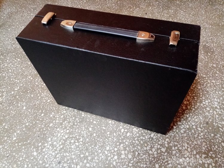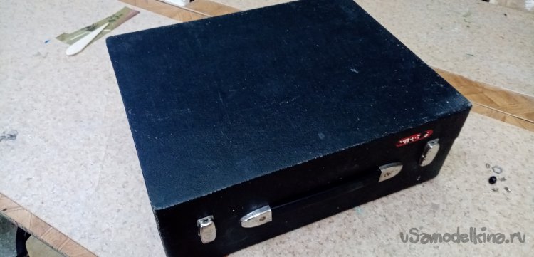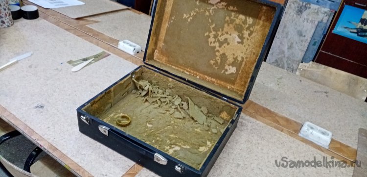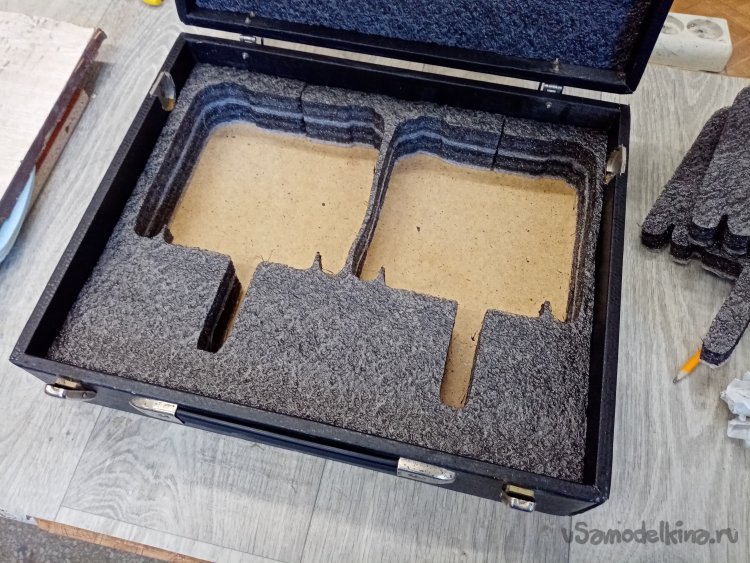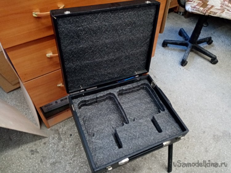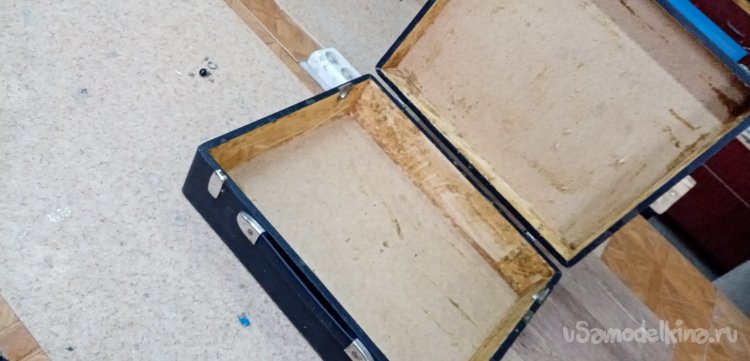 Но есть трудность, внутренняя отделка чемоданчика полностью пришла в негодность. Изначально порезал приклеенный и трухлявый поролон ножом. Такая процедура не дала хорошего результата. Полностью отскоблить мягкое место вместе с остатками клея не удалось
