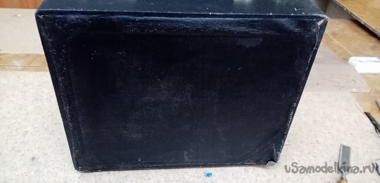 Постепенно борт за бортом приклеиваю обшивку по всему периметру коробочки.